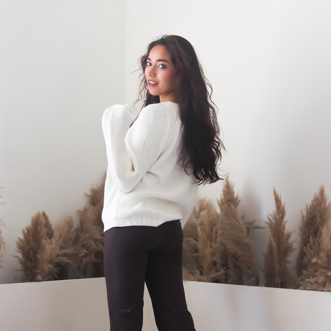 Embrace winter with the Yuki Pullover: this stylish sweater symbolizes purity and cozy vibes for modern women.