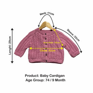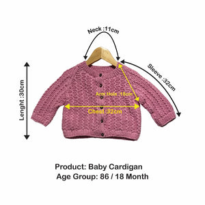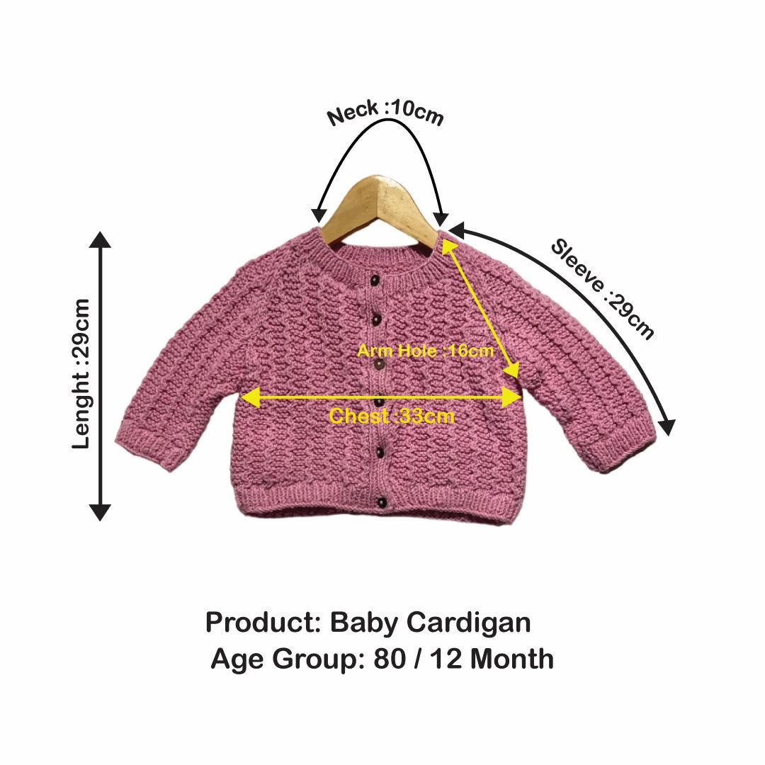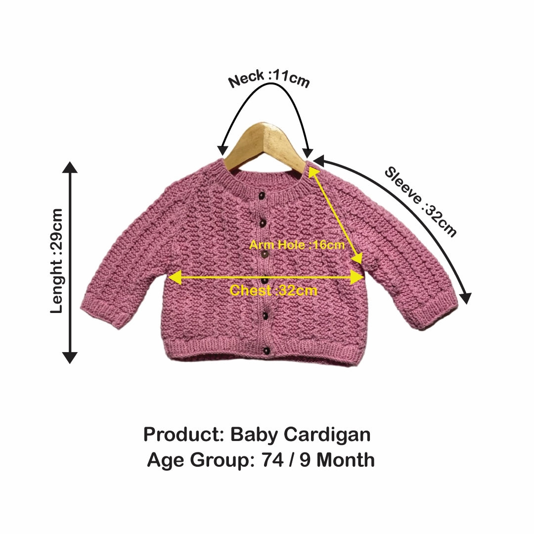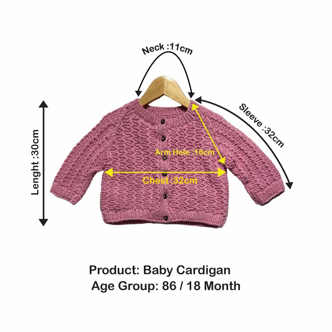 Cardigan | Hand Knit 100% Wool | For Baby Girls| Size-2 Years
