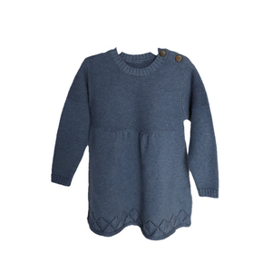 - Adorable baby frock in soothing blue, crafted from 100% organic cotton.
