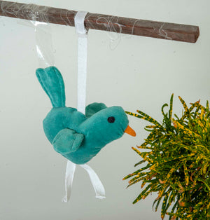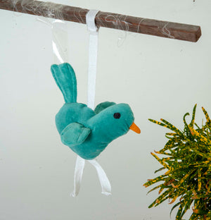 - Light green bird soft toy, hand-knitted from 100% premium cotton.