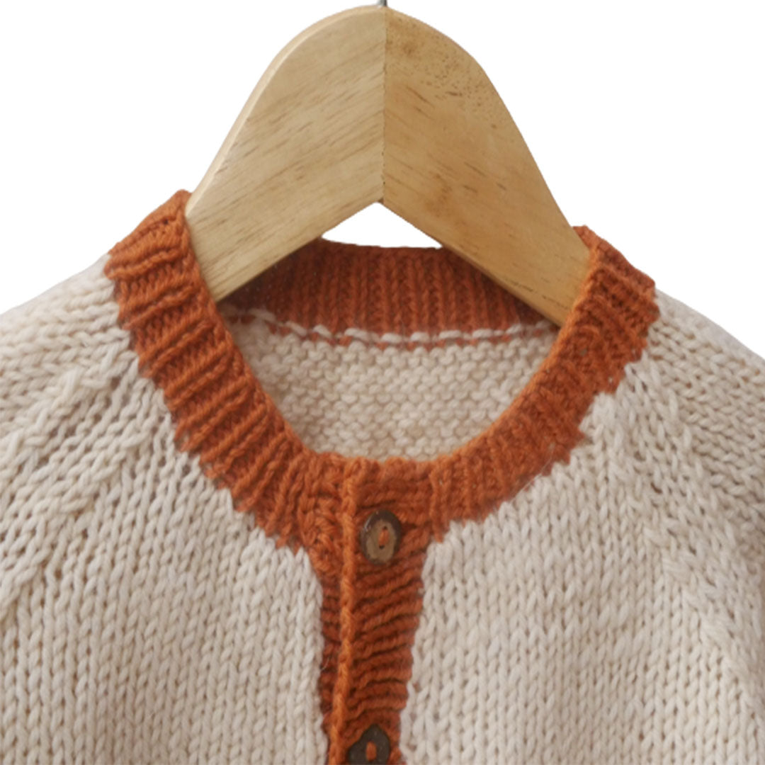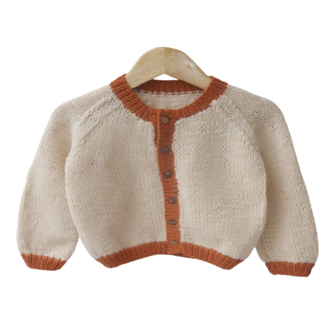 Cardigan ivory & Rust | For Girl and Baby Boy | 100% Organic Wool | Size-18 Month