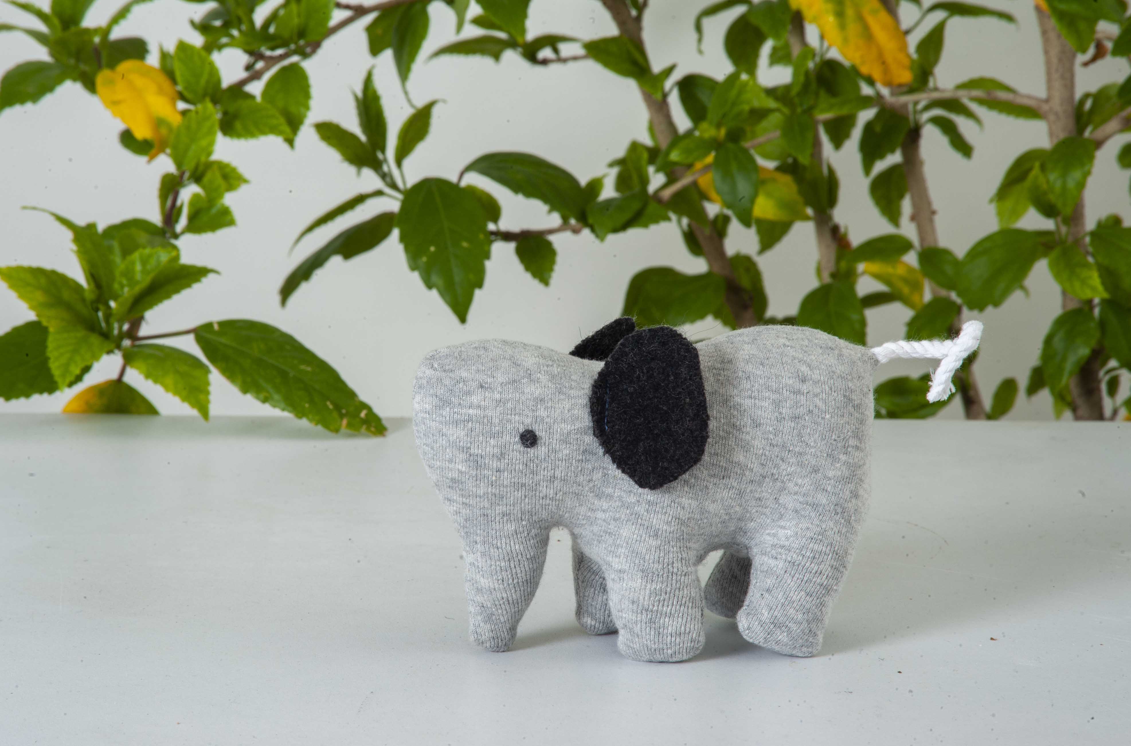 - Unique grey and black elephant soft toy, machine-knitted with 100% premium cotton.
