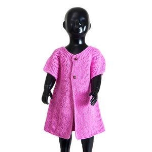 - Classic rose-themed baby frock hand-knitted from 100% organic wool.