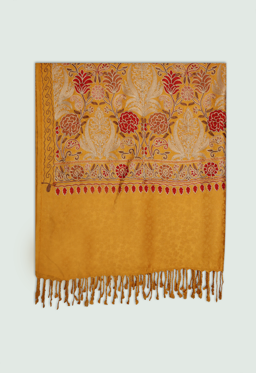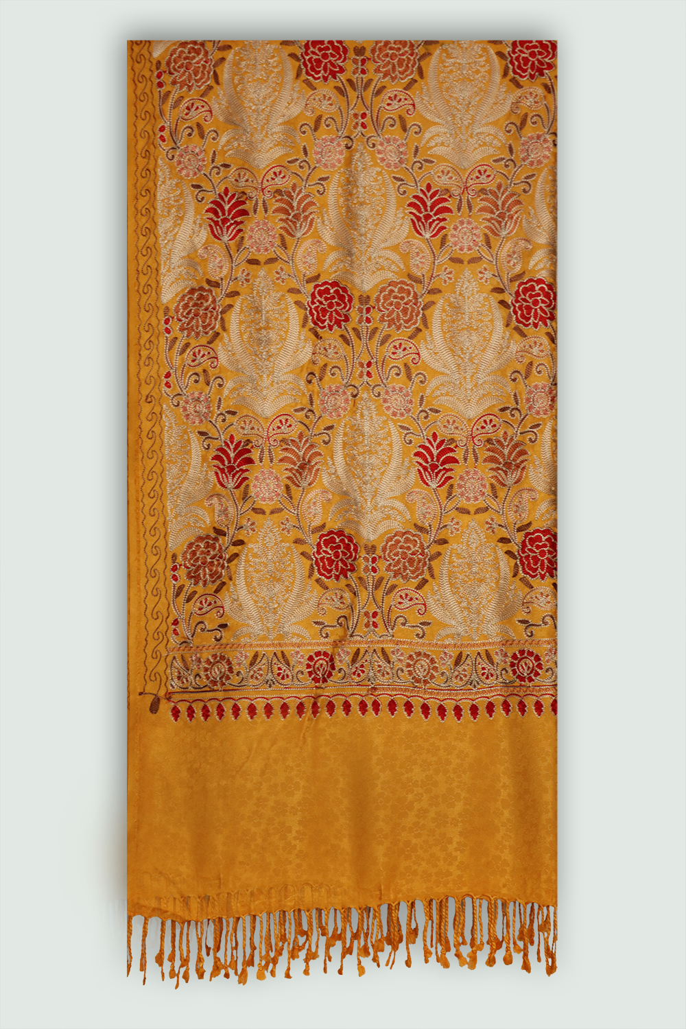 Odhni Floral Motif - Embroidered - Yellow with Multi color | Stoles & Shawls