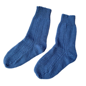 - Elevate your comfort with sustainable organic wool socks in chambray.