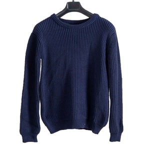 Elevate your style with sustainable and skin-friendly organic wool pullover in deep mid-night blue.
