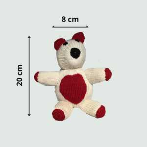 - Adorable hand-knitted Teddy Bear Stuffed Toy crafted from 100% organic cotton.