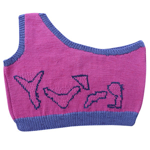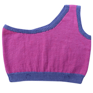 Organic Wool | Top with One Shoulder | Wild Blue & Fuchsia Fedora