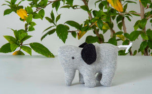 - Unique grey and black elephant soft toy, machine-knitted with 100% premium cotton.