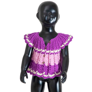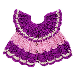 - Vibrant multi-color baby frock hand-knitted from 100% organic wool.