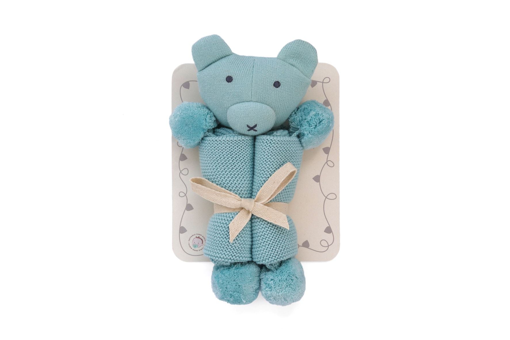 Home Teddy Bear with pompom Hand Knitted Cuddle Cloth | 100% Premium Cotton