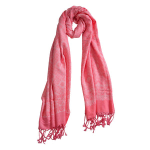 Stoles & Shawls | Pink Woolen S & White | 70x200 CM |